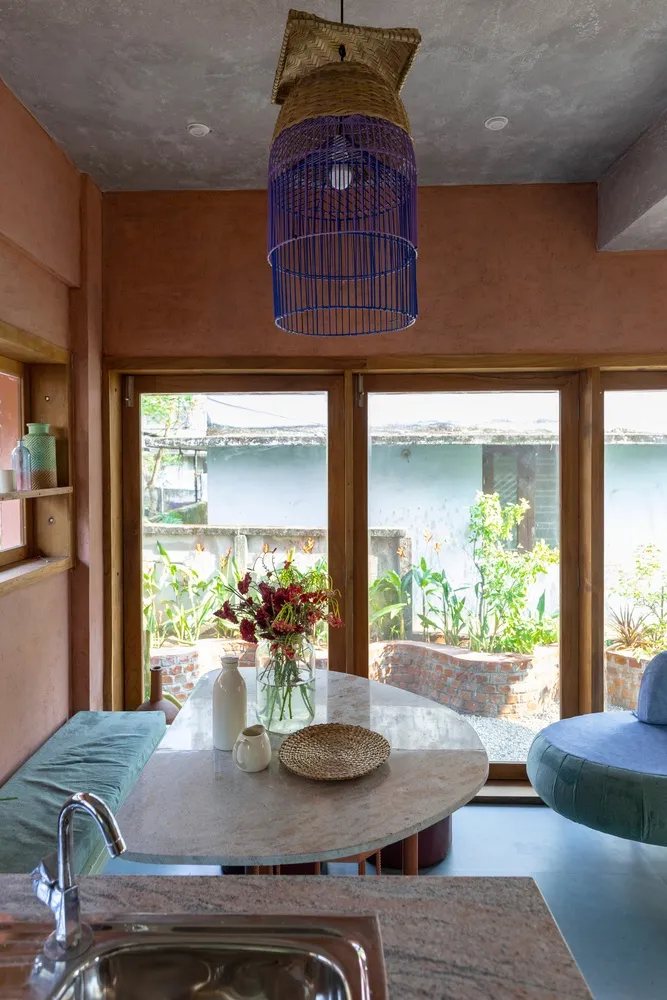 این پروژه، امکانات زندگی در فضاهای کوچک را از طریق یک طرح پلان باز که فضاهای نشیمن، غذاخوری و آشپزخانه را با هم ترکیب میکند، بررسی میکند. طبقه همکف دارای یک اتاق خواب با یک توالت متصل است، در حالی که طبقه اول دارای دو اتاق خواب با یک توالت مشترک است که همگی توسط یک راه پله مارپیچ که با دقت در فضای محدود موجود تعبیه شده است، به هم متصل میشوند. از رنگهای پاستلی برای تعریف و جلوه بخشیدن به فضاهای ساخته شده با مصالح سفالی استفاده شده است.