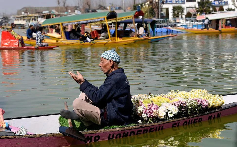 نماز خواندن مرد روزه دار مسلمان روی قایق در دریاچه دال کشمیر/ زوما